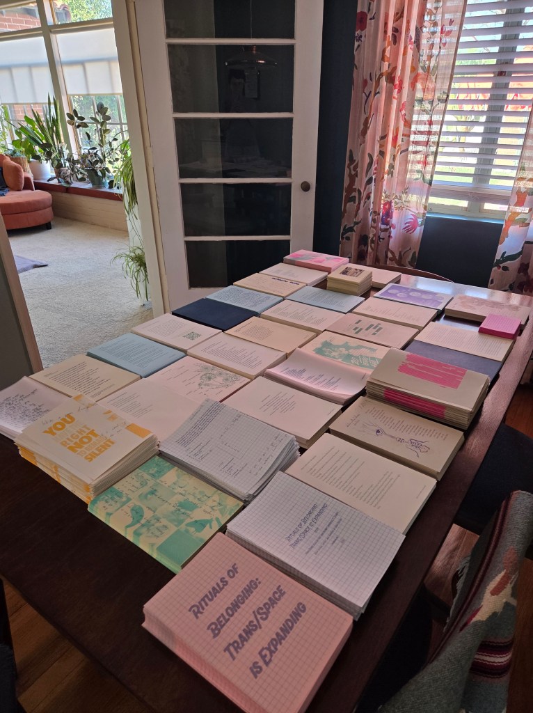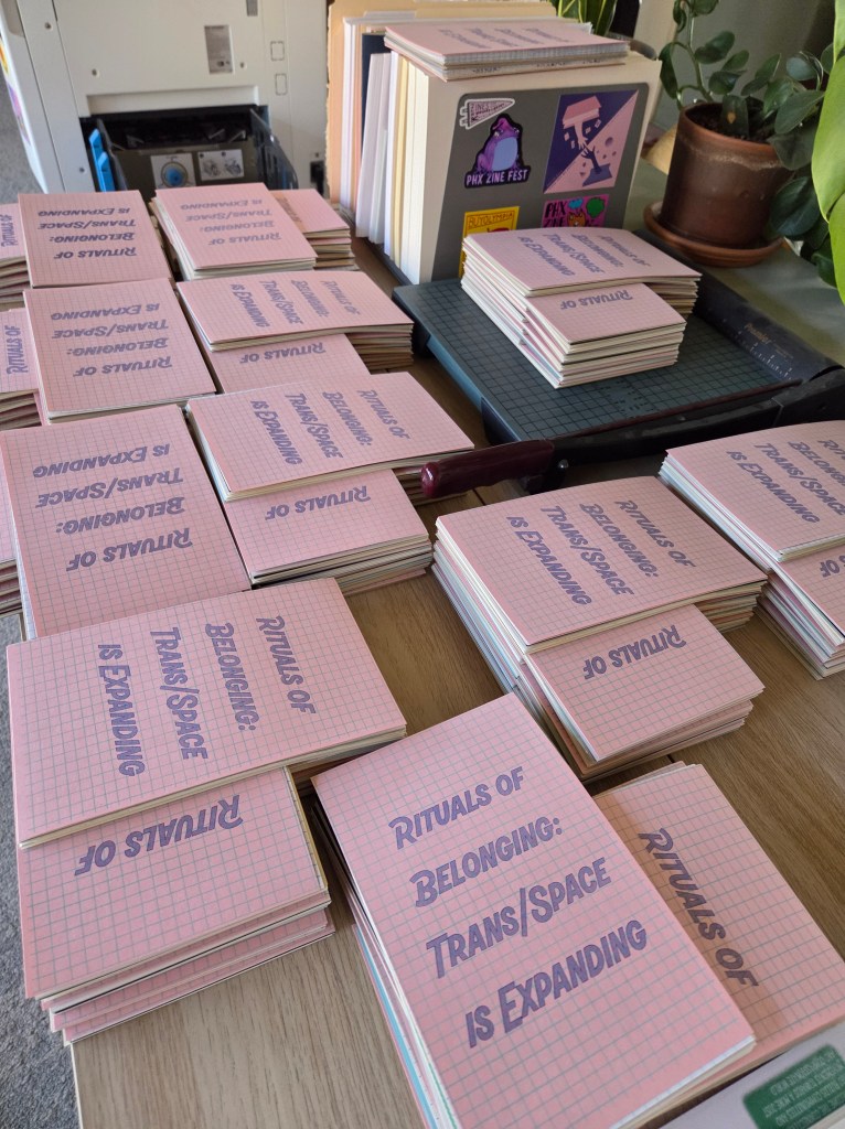 Photos of a recent collaboration, Rituals of Belonging: Trans/Space is Expanding; read the full text online and get a sense of what Risograph publications look like.